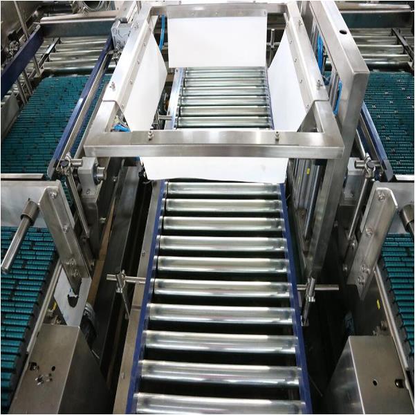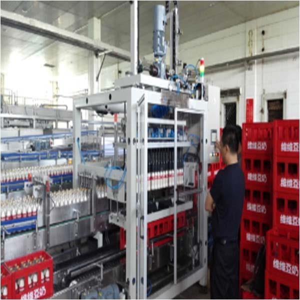設(shè)備用于光明禮品的包裝線,將禮品包編組放置到大箱中。能夠同時(shí)支持兩臺禮品包包裝機(jī)。機(jī)械手完成裝盒動(dòng)作之后,可以根據(jù)禮品包的進(jìn)入通道,將大箱切換到相應(yīng)的輸送線上。